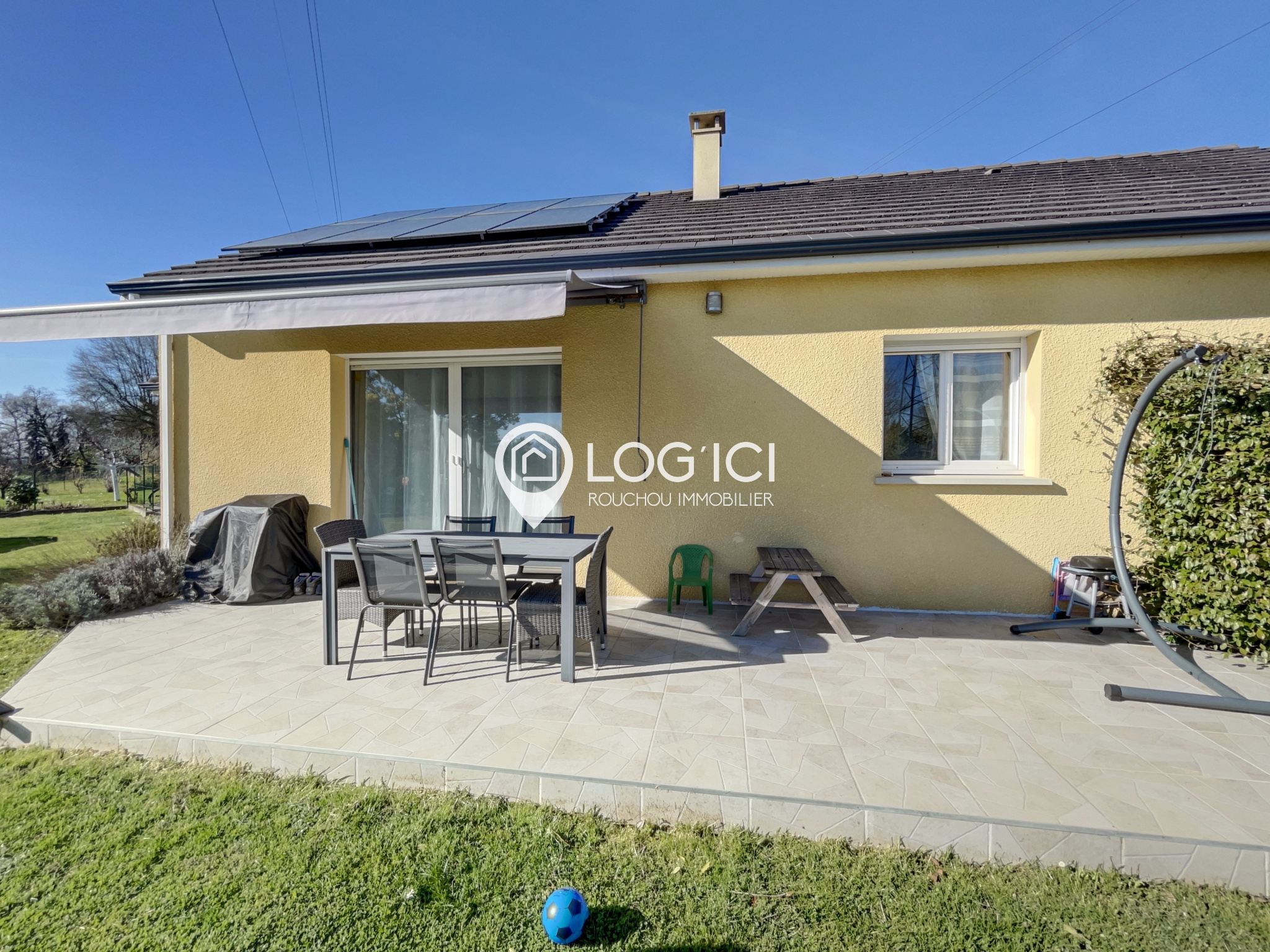 Équipée de panneaux solaires, la maison répond aux attentes actuelles en matière de performance énergétique et de confort durable.
