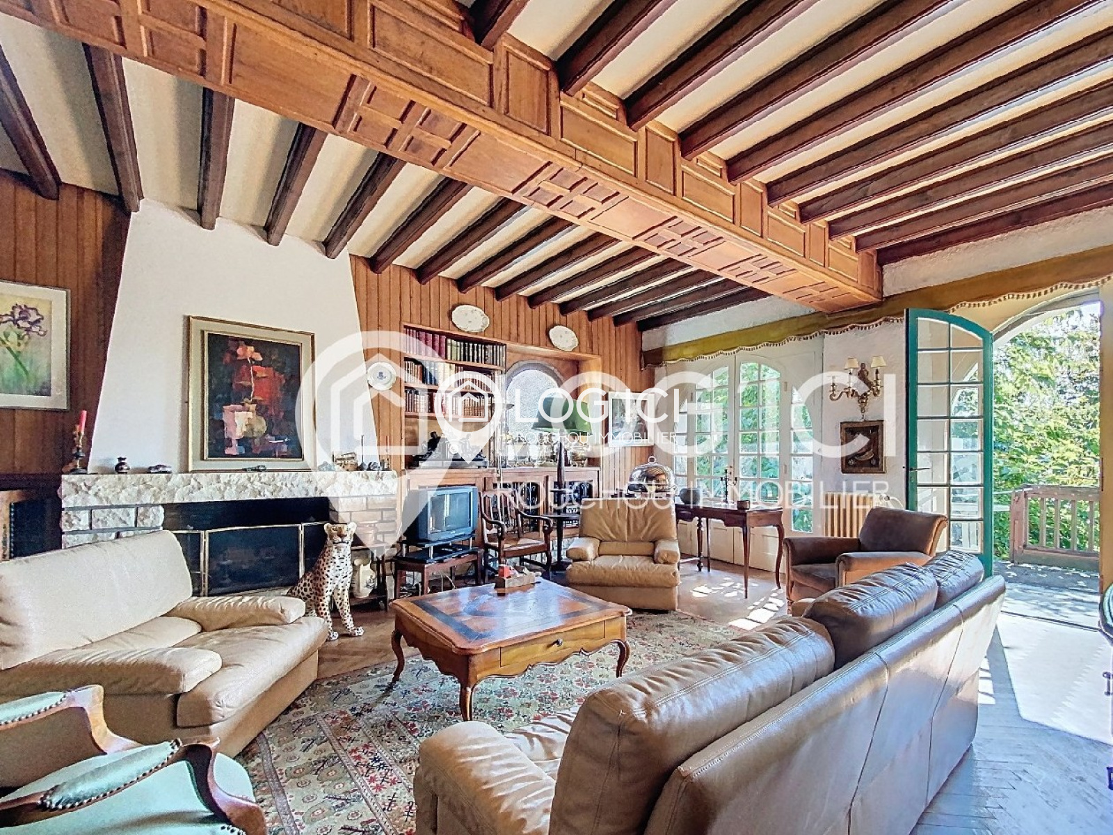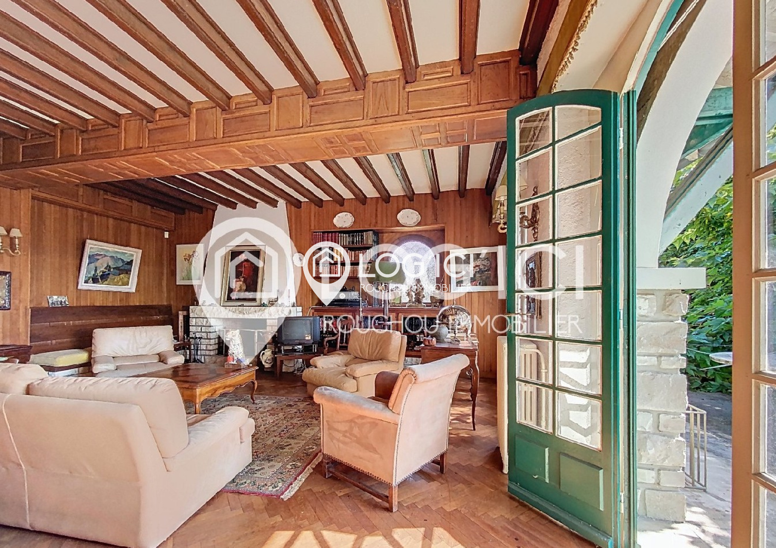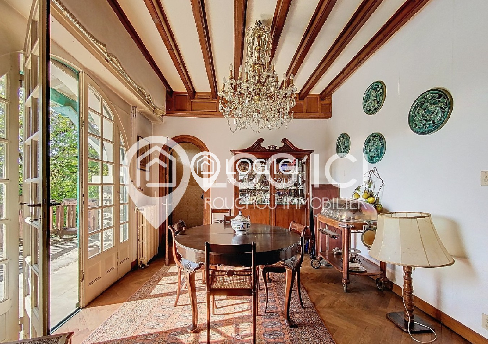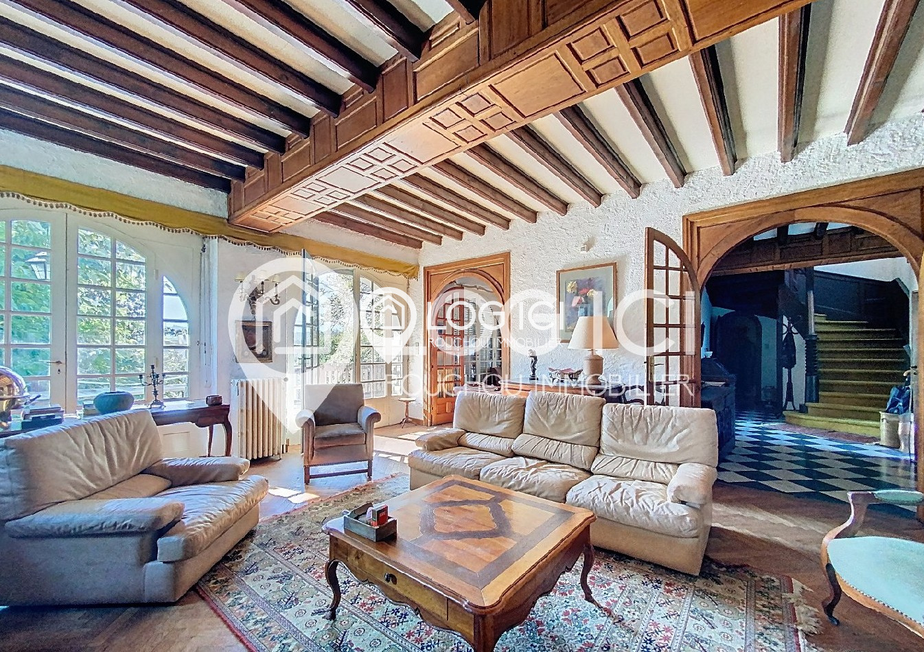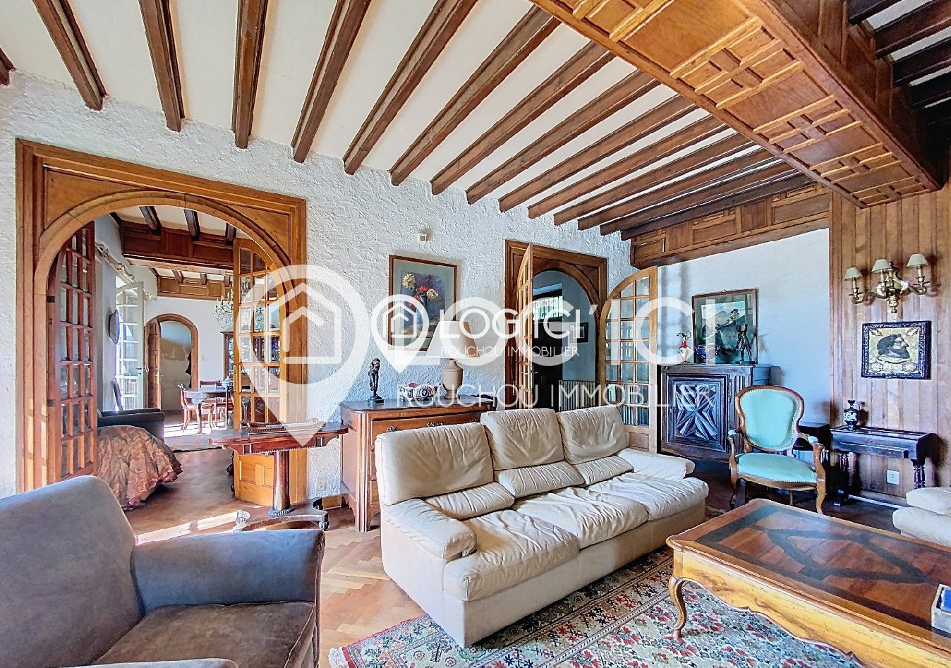 Le séjour orné de boiseries d’orfèvre, la salle à manger à l’élégance XIXe, et la cuisine vaste et fonctionnelle offrent un cadre chaleureux et raffiné à la vie de famille.