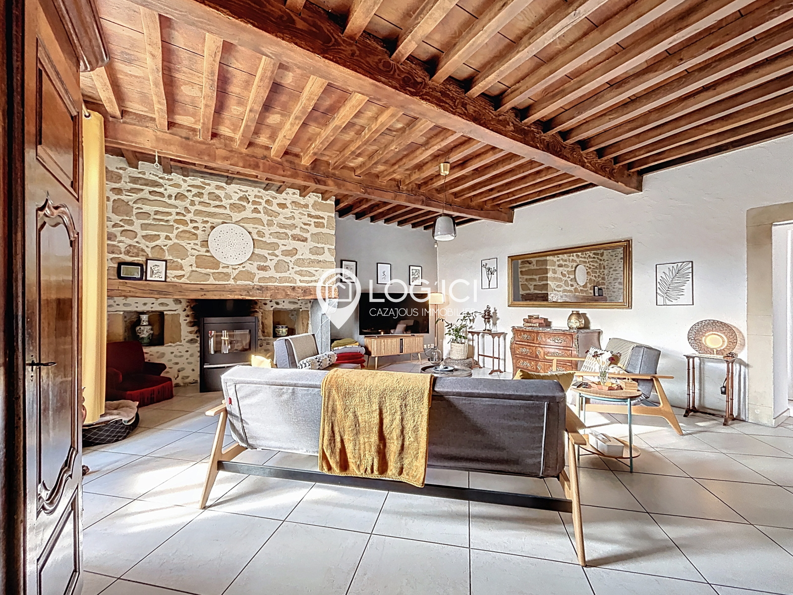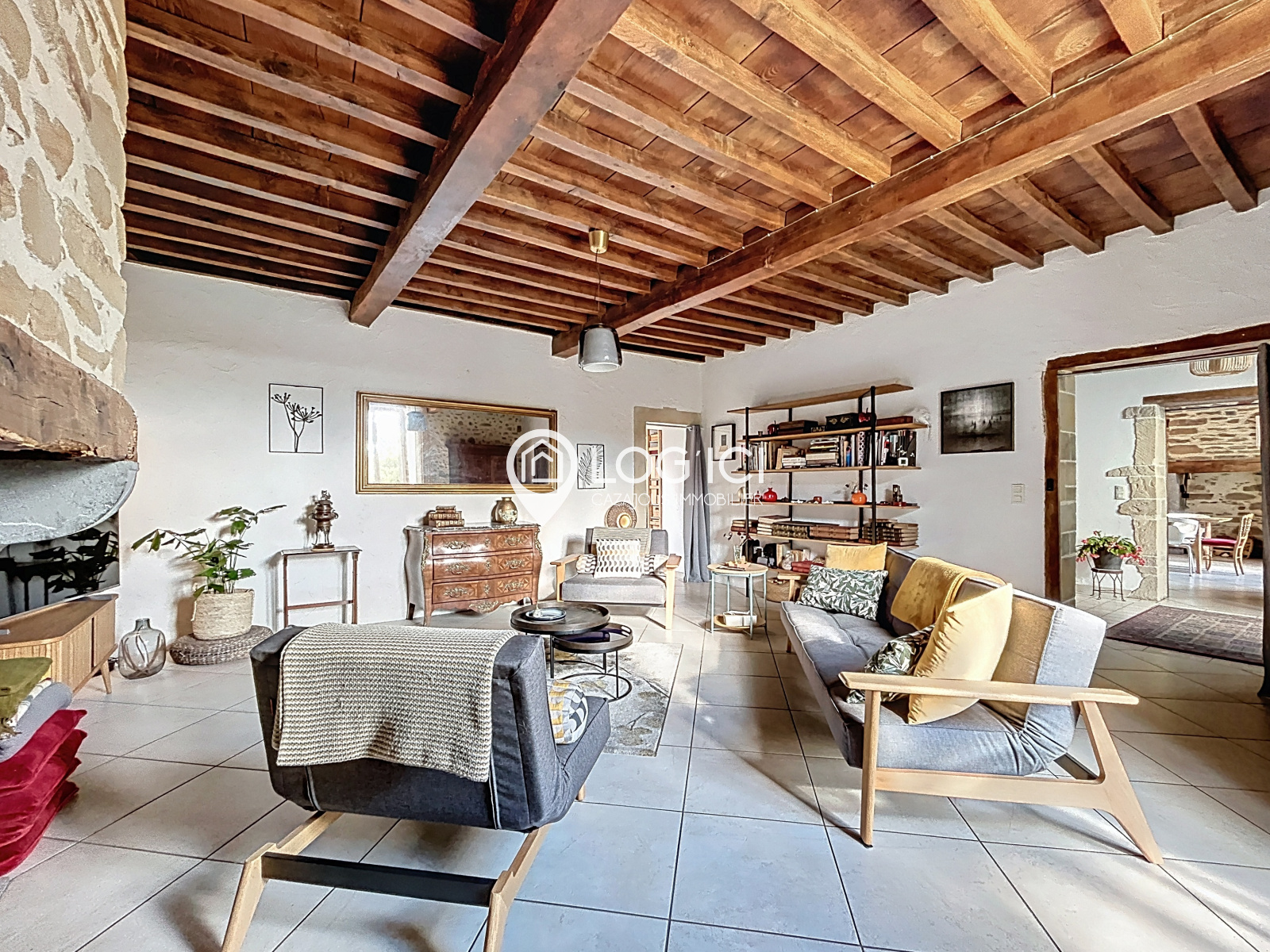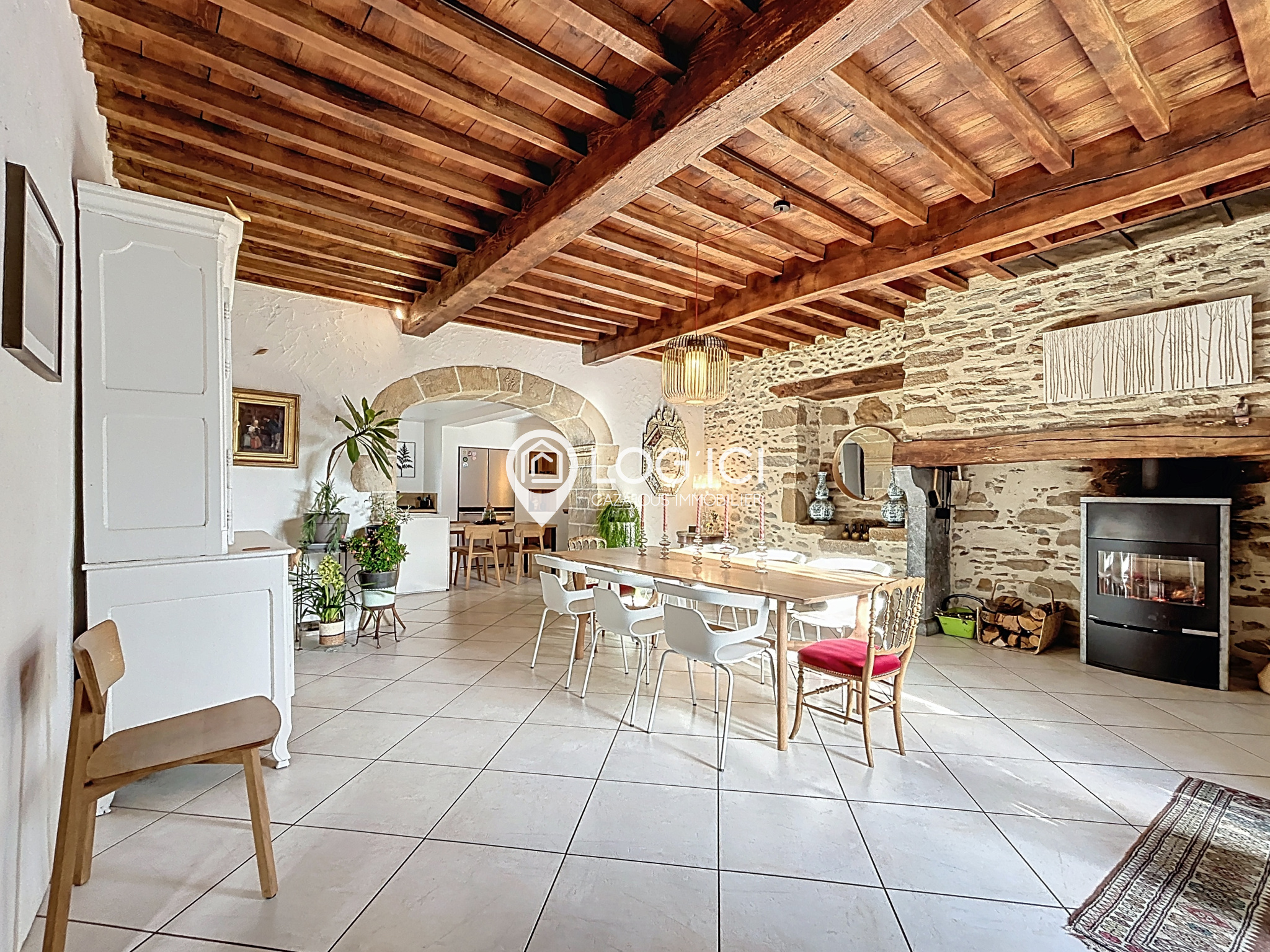 Dès l’entrée, les volumes généreux et la luminosité des pièces de vie se font sentir. La maison propose un vaste salon agrémenté d’un poêle à bois, idéal pour les soirées chaleureuses, ainsi qu’un grand séjour, lui aussi équipé d’un poêle à bois, offrant une ambiance conviviale et familiale. La cuisine, semi-ouverte, entièrement aménagée et équipée, est récente et fonctionnelle. Elle se prolonge par un cellier très pratique pour le quotidien et donne accès à une agréable terrasse couverte, parfaite pour profiter de l’extérieur en toutes saisons.
