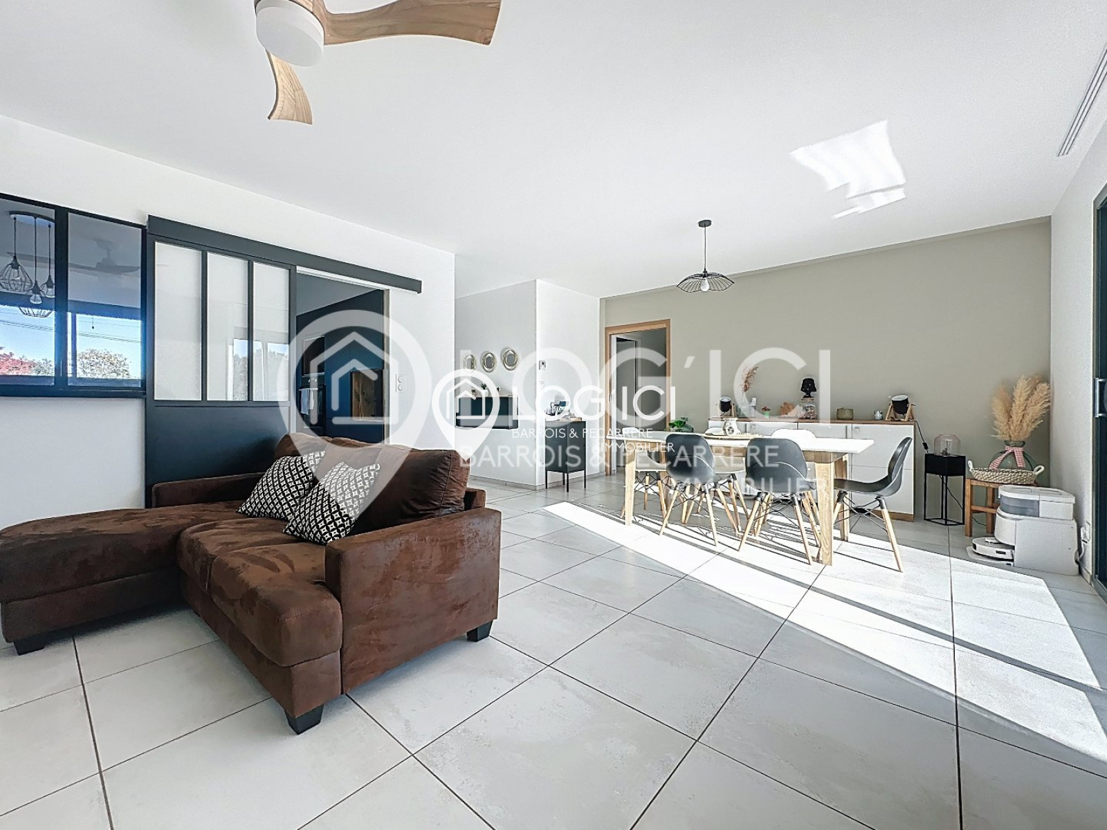 Soumoulou (64420)Belle maison contemporaine de plain-pied (2020) Nichée sur la commune de Ger dans un environnement calme et verdoyant, cette belle maison contemporaine de 102 m² environ séduit par son esprit chaleureux et ses beaux matériaux. Édifiée sur un terrain clos et paysagé de près de 2 000 m², possibilité de diviser apres modification de la fosse septique (terrain constructible) elle offre un cadre de vie paisible, au cœur d'un village prisé et dynamique, à proximité de toutes les commodités. Elle se compose d'une pièce de vie lumineuse ouverte sur le jardin, de trois chambres confortables dont une avec un dressing, d'une buanderie, et bénéficie d'un chauffage au sol pour un confort optimal. À l'extérieur, vous profiterez d'une agréable terrasse donnant sur la piscine au chlore 7x4 m, parfaite pour les beaux jours, ainsi que d'un carport double. Volets roulants et manuels, finitions soignées, et atmosphère douce et contemporaine font de cette maison un lieu de vie où il fait bon se ressourcer. Un véritable havre de paix à découvrir sans tarder Laure Barrois au 0562348978 ou 0681957564