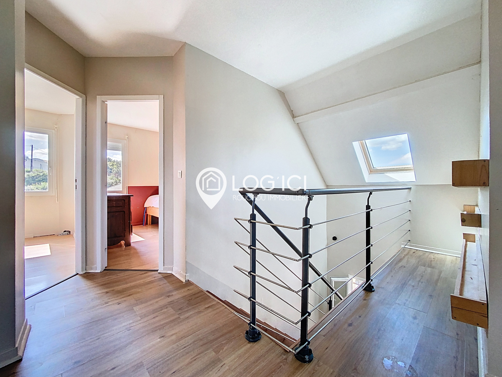 A l'étage : un palier, 4 chambres spacieuses, salle de bain et wc.
