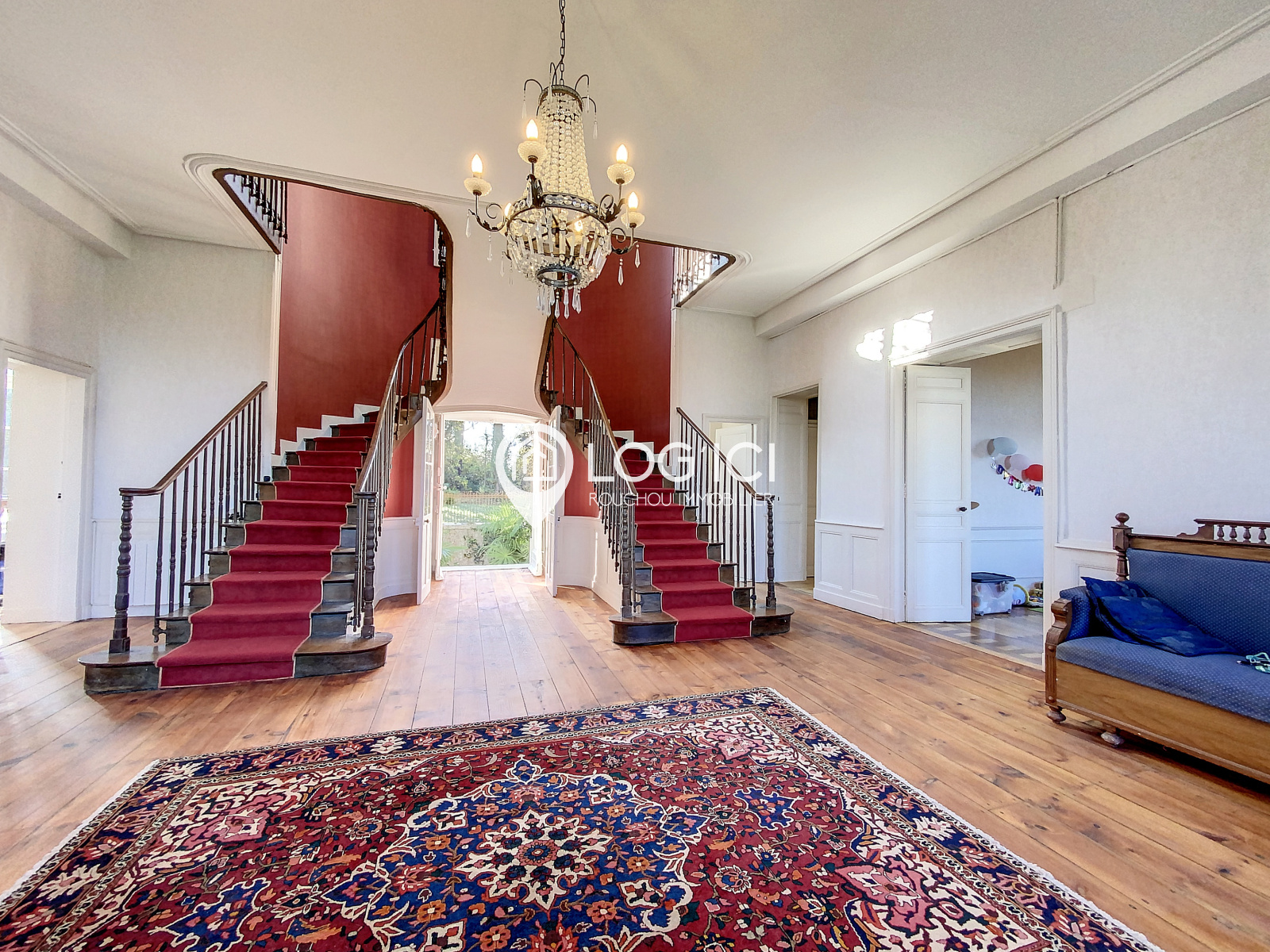Avec une surface totale d'environ 520 m², dont 150 m² en rez-de-jardin à aménager, cette demeure se compose d'une partie centrale surmontée de deux tours, s'étendant sur 3 niveaux. Elle compte jusqu'à 8 chambres et 8 salles de bains.